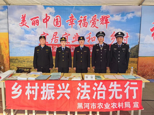 喜庆丰收,万物归仓。2023年9月23日,适逢第六个“中国农民丰收节”,“庆丰收 促和美”2023年中国(爱辉)农民丰收节在黑龙江省黑河市爱辉区瑷珲镇天市公园广场将举办,爱辉区11个乡镇、2个农垦根据各自农业特色爱辉区优质农产品,黑河市农业综合行政执法支队组织执法人员到现场开展普法宣传。