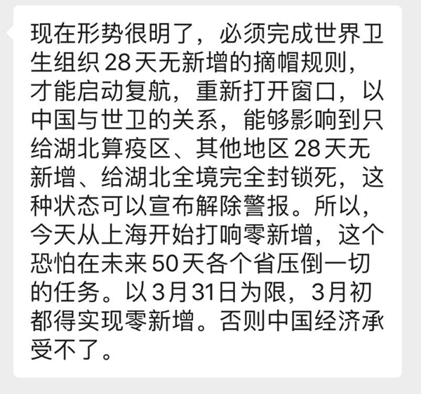 一句话概括这个谣言就是:为了让世卫组织(WHO)取消对中国的疫区限制,上海人为控制病例0新增。