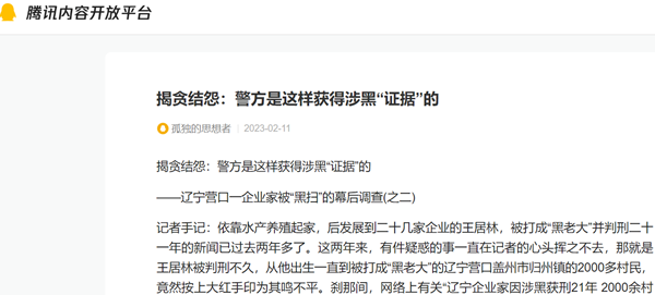 虽然律师如此的辩护,证人也如此的证明,可结果却是,公安怎么搜集来的证据,检察机关就怎么起诉,检察机关怎么起诉,法院就怎么下判决。于是王家《有冤要诉:谁能成为王居林最后的救济?》为大家揭秘释疑,请关注《营口一企业家被“黑扫”的幕后调查(之三)》(记者晓风)