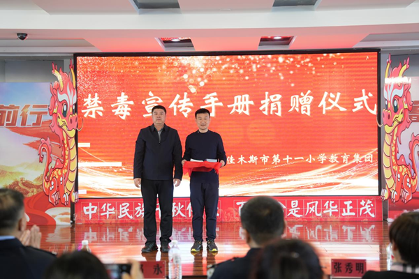 活动中,学校党总支书记张秀明宣读了聘请禁毒副校长的决定:特聘前进分局禁毒大队大队长周家佳为我校禁毒副校长;副校长王妍宣读了聘请禁毒校外辅导员的决定:特聘佳木斯市禁毒委员会宣讲团团长苏双龙为我校禁毒校外辅导员,并颁发聘任证书。