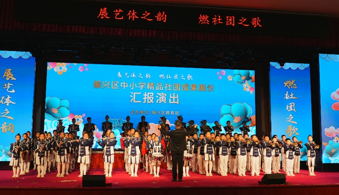 4月11日,辽宁省丹东市振兴区中小学精品社团成果展示汇报演出在红房小学礼堂举行。本次汇报演出由振兴区教育局主办,以“展艺体之韵 燃社团之歌”为主题,演出在红房街小学舞蹈社团带来的开场舞《发光吧,红房少年》中拉开帷幕,本次活动共有辽宁省丹东市振兴区12所学校近500名学生参演。孩子们用灵动的舞姿、甜美的笑容,展现出少年儿童朝气蓬勃、积极向上的精神风貌 ,瞬间点燃了现场气氛。本场演出,形式丰富多样,涵盖舞蹈、合唱、器乐演奏、快板、体育技能展示等多个领域。他们的精彩表现将演出推向了一个又一个高潮。
