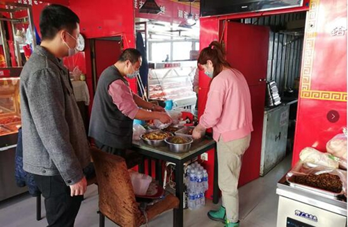 甘河农场周老爹熟食店的老板与妻子二人加入志愿者服务队为疫情一线工作人员送去可口的饭菜。