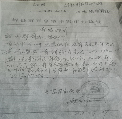 辉县市法院出具的判决书,意味着他与梁小刚签订的协议成了一张废纸,也成为村委会要挟郎现军的“最佳理由”。2013年7月29日,当时的王家庄村支书潘效庄以村委会购买水泵为由,向郎现军借款2万6千余元,出具了村级证明并加盖村委会的公章。2009年至2010年,郎现军的父亲在村委会的指派下从事各种零工,共计报酬5000元。从开始签订停车场承包协议,到后来村委会的借款和报酬,郎现军共损失5万多元。这些损失现任村长却一概不认账,“谁跟你签的协议你找谁,谁欠你的钱你找谁,这笔借款没有入村委会的帐目”,村长以一句这样的话搪塞郎现军。有村委会的公章,有各种证明,有负责人的签字和指印,怎么就成了一笔无人问津的“呆账”呢?村委会与梁小刚之间产生的纠纷,怎么能让第三方受到牵连和遭受损失呢?6月3日,在没有任何征兆的前提下,且在新乡市中院二审阶段,村委会把郎现军承包的停车场区域强行破坏,并栽种了绿化树。对此,有律师认为,作为现任村干部,要积极的协助受害方处理问题,而不是用粗暴、逃避的方式对待村民,更不应该因为他人与村委会的承包合同纠纷而伤害第三人。如果问题不能得到妥善处理,郎现军可以选择通过法律途径维护自己的合法权益。(特约记者王辉)