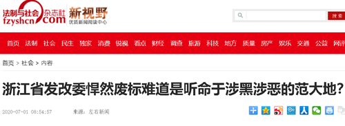 本站讯 2020年6月28日,浙江省发改委悍然发布公告,一举否决一省级重点工程所有投标!这一事件,看上去就非同寻常。而更深层次的原因恐怕还不为大多数人所知:一年多前,在该工程招投标刚刚公布中标候选人后,范大地就威胁中标候选人浙江一路建设有限公司(简称一路公司)分给他一些工程或者给他补偿1000万元所谓的损失,否则他就要举报,废掉一路公司的标!而浙江省发改委的这次废标,正好是按照范大地的旨意做的。这,不禁令人产生太多的联想,难道发改委是听命于范大地的指挥不成?