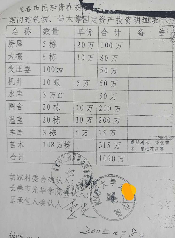 虚构的地上物补偿列表(举报人提供)
