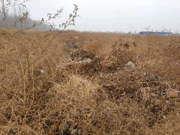 图:村委会承包出去的土地杂草丛生、大量建筑垃圾掩盖基中
