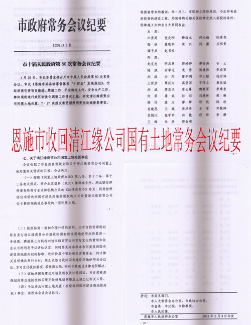 但后来的事实表明政府官员虽然认错就是不予纠错,渎职不作为,罔顾企业困难,严重损害恩施市营商环境。清江缘公司监事多次找到苏勇请求解决,迫于媒体和舆论压力,2019年11月苏勇组织恩施市政府出具会议纪要,同意收储清江缘公司的土地。