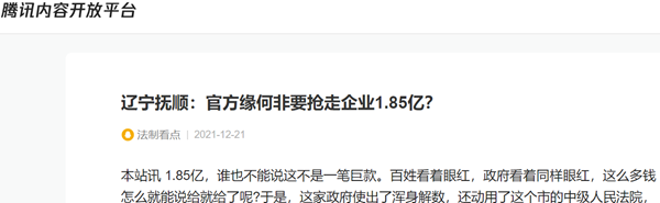 本站讯 1.85亿,谁也不能说这不是一笔巨款。百姓看着眼红,政府看着同样眼红,这么多钱怎么就能说给就给了呢?于是,这家政府使出了浑身解数,还动用了这个市的中级人民法院,可是,在辽宁省高级人民法院的一再纠正下,最后还是以判决的方式,只想给企业143万元。这样的事就发生在辽宁省抚顺市,带着许多疑惑,记者于近日来到此市,对此事展开调查采访。