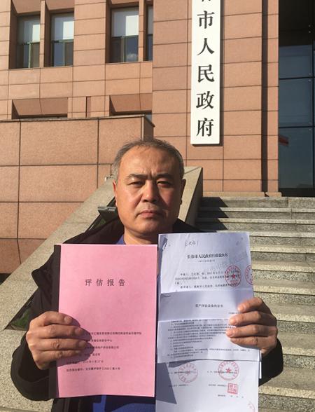王志刚拿着评估报告到市政府申请履行(王志刚提供)