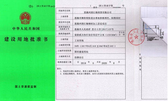 公开资料显示:2018年,湖北省恩施市的清江缘公司以挂牌竞拍方式取得了位于恩施市阳鹊坝村的一宗土地使用权,面积为123708平方米(合185.6亩),土地出让合同电子监管号:4228012017B32394,2018年1月31日取得“鄂(2018)恩施市不动产权第0001225号”工业用地不动产权证。