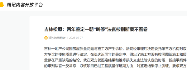 2021年9月,松原市宁江区法院决定委托第三方机构对双方争议的楼房质量问题进行鉴定。