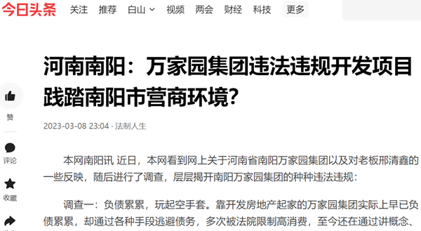 本网南阳讯 近日,本网看到网上关于河南省南阳万家园集团以及对老板邢清鑫的一些反映,随后进行了调查,层层揭开南阳万家园集团的种种违法违规: