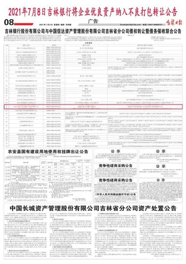 德卡公司称:由于受疫情影响,再加上政府欠钱不给,公司资金周转遇到暂时困难。就此事,德卡公司多次与吉林银行沟通说明情况,万万没有想到的是,2021年4月22日,德卡公司突然收到松原中院的执行裁定书(【2021】吉07执66号之一)和执行通知书(【2021】吉07执66号),法院查封了德卡公司用于抵押的房产。更令德卡感到震惊的是,7月8日,居然从吉林日报上看到了吉林银行将德卡公司的资产纳入不良资产打包转让的公告!