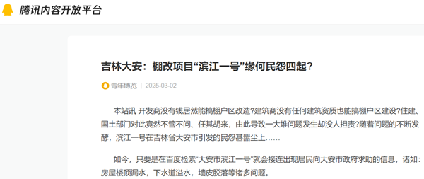 本站讯 开发商没有钱居然能搞棚户区改造?建筑商没有任何建筑资质也能搞棚户区建设?住建、国土部门对此竟然不管不问、任其胡来,由此导致一大堆问题发生却没人担责?随着问题的不断发酵,滨江一号在吉林省大安市引发的民怨甚嚣尘上……