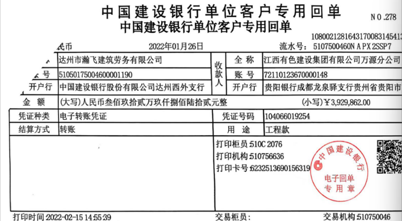 记者获得的银行流水显示,2019年至2024年间,"万源至八台快速通道"和"铁矿至黑宝山道路"两个PPP项目资金,被施工方江西有色建设集团(下称江西有色)与业主单位万源市恒源工程项目管理有限公司(下称:恒源公司)、万源市源台工程项目管理有限公司(下称:源台公司)通过精心设计的"资金迷宫"层层转移: