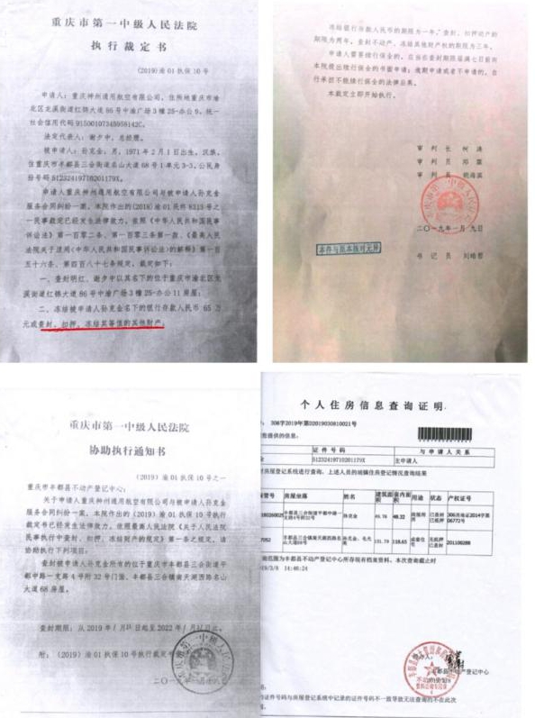 记者认真查阅2018年重庆市渝北区人民法院(2018)渝0112民初9631号民事判决书、重庆市第一中级人民法院(2018)渝01民初8313号民事判决书以及重庆市第一中级人民法院(2019) 渝01执保10号执行裁定书, 看到裁定书中第一页二条很明确:冻结申请人孙克金名下的银行存款人民币65万元或查封、扣押、冻结其等值的其它财产。