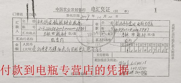 2009年10月9日,郑文梅又以原法定代表人的名义向榆树直属库出具“付款委托书”一份,称“我同意将在榆树直属库存的保证金及费用款1101173.65元转到榆树市金达电瓶专营店”。但该委托书并未加盖公章,也没有法人签字。2009年10月12日,榆树直属库按照郑文梅的要求向其指定账户分2次转款共1101173.65元,其中:第一笔,郑文梅于2009年10月12日从电瓶商店提走现金1034273.65元;第二笔66900元于2009年10月23日由案外人王占义从榆树直属属,以租赁费的名义将款转入电瓶商店,并提走。