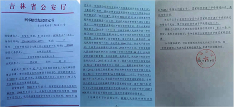 吉林省公安厅前后不一的两个决定,令孙宝民十分不解,“堂堂的国家机关,居然反复无常、出尔反尔,这样的公权机关还有人敢信吗?”孙宝民气氛的说,无奈,他又向吉林省高级人民法院申请做出赔偿决定。