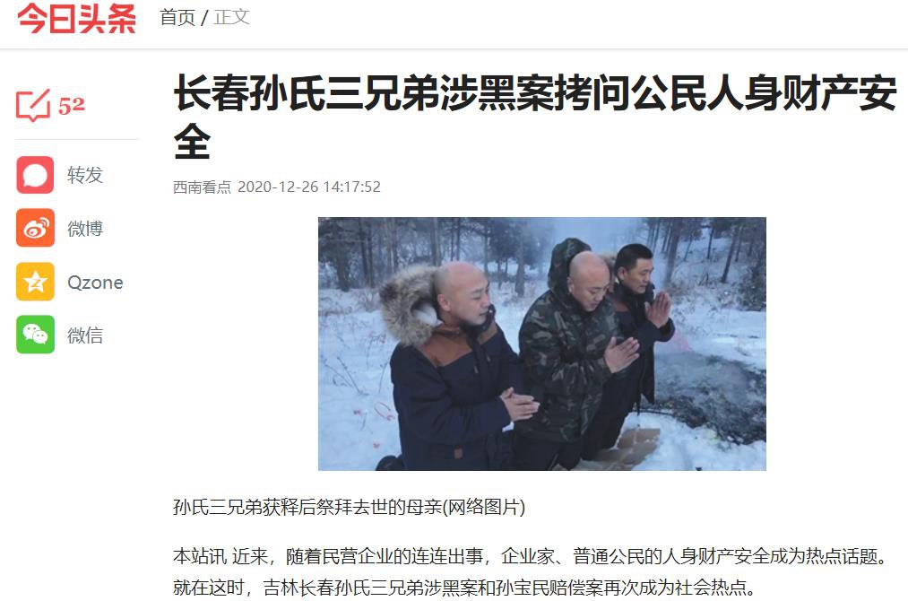 本站讯 近来,随着民营企业的连连出事,企业家、普通公民的人身财产安全成为热点话题。就在这时,吉林长春孙氏三兄弟涉黑案和孙宝民赔偿案再次成为社会热点。