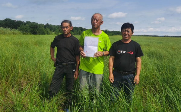 2021年8月5日,张广道、陈德军、王贵山三人再次来到当年张广道涉案地块指认现场。陈德军、王贵山手指一片草地说,2009年这块18公顷左右的土地是我们种的大豆,我们6月4日种完地就走了,5日早上张广道就被公安局抓了,我们也不知道张广道为啥被抓,这块地确实和张广道没有关系。张广道手举陈德军、王贵山的证明,三人在涉案地里合影为证。陈德军说:“当时我和保护区也没有签订承包合同,这块地是三江保护区李红军站长让我种的。”
