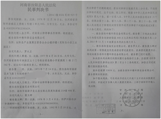 二,曹某向媒体举报:2014年10月,洛阳中懋环保设备有限公司因资金周转需要,名义上徐六生向其经营者曹某借款300万元,但借款当天,徐六生就要求曹某支付8.4万元利息,实际借款只有291.6万元。到2015年10月将近一年时间,除曹某已经支付的58.96万元还款和利息外,徐六生以“砍头息”、重复计息、借新还旧、更换债权人等手段,把借款快速累高到了440万元,并恐吓逼迫曹某签订虚假协议书,明确要求曹某将名下公司洛阳中懋环保设备有限公司的土地、厂房等固定资产办理在徐六生名下。2016年5月9日,刘妍妍在徐六生的安排下,在汝阳法院把曹某及洛阳中懋环保设备有限公司等人起诉了,要求偿还440万元本金及利息37.75万元。2017年4月13日,汝阳县人民法院作出了(2016)豫0326民初929号判决(判决书),曹某和洛阳中懋环保设备有限公司不服判决,目前仍在维权中。徐六生团伙通过更换借款协议和出借人等手段将债务虚增,并通过诉讼、伪造银行流水等手段将虚假的债务合法化,以此手段达到非法占有借款人房产土地的目的。
