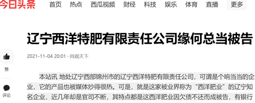 本站讯 地处辽宁西部锦州市的辽宁西洋特肥有限责任公司(简称西洋肥业),可谓是个响当当的企业,它的产品也被媒体炒得很热。可是,就是这家被业界称为西洋肥业的辽宁知名企业,近几年却是官司不断,其特点都是其因欠债不还而成被告,有银行的,有企业的,数额都在千万以上。可就在法院判决“欠债还钱”之后,这家企业还能变着法地不还钱或设法赖掉部分欠款。那么,这样大名鼎鼎的企业,缘何能做出这样的事来?是原告的无理取闹还是西洋肥业就是铁杆老赖?带着这些问题,记者于近日来到辽宁,对此事展开调查采访。