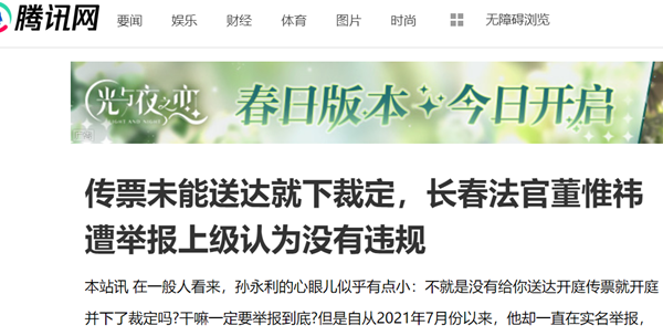 本站讯 在一般人看来,孙永利的心眼儿似乎有点小:不就是没有给你送达开庭传票就开庭并下了裁定吗?干嘛一定要举报到底?但是自从2021年7月份以来,他却一直在实名举报,他举报的人是原长春市中级人民法院、现吉林省高级人民法院法官董惟祎,这件事在吉林省法院系统引发了一场不大不小的“风波”,在坊间闹得沸沸扬扬。可是,他的举报到现在也没有任何结果,长春市人民检察院把他的举报当成信访案件,而吉林省高级人民法院给他的答复则是,董惟祎在办理他的案子中不存在违规问题。这,令他感到十分不解和愤怒,他说一定要把举报进行到底,“我就不信没有管事的地方了!”他说。