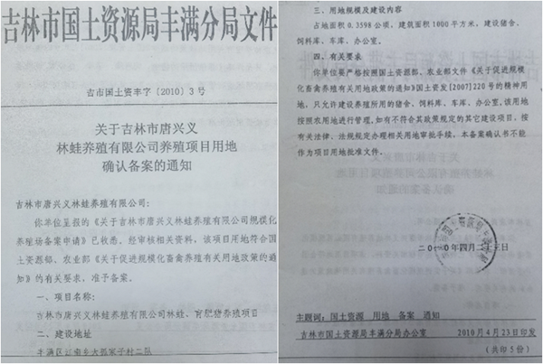 据唐氏林蛙公司的法人唐兴义称,唐氏林蛙公司于2011年4月14 日成立,经营范围为林蛙养殖,是丰满区招商引资企业。2008年5月11日,唐兴义与江南乡大孤家子村村民委员会签订了《土地承包经营合同书》,承包大孤家子村 6734 平方米闲置涝洼荒地。2016年11月9日,唐兴义与江南乡大孤家子村村民委员会签订《大孤家子村荒地(空闲地)租赁协议书》,承包 1667 平方米集体土地。唐氏林蛙公司在租赁土地上建设建筑,作为唐氏林蛙公司的办公楼,面积约为2层800平方米。2010年4月23日,原吉林市国土资源局丰满分局作出吉市国土资丰字[2010]3 号《关于吉林市唐氏林蛙养殖有限公司养殖项目用地确认备案的通知》,为吉林市唐氏林蛙养殖有限公司林蛙、育肥猪养殖项目的用地进行了备案。唐兴义说,在近十年的时间里,区政府在没有作出任何处罚决定的情况下,竟然以“非法建筑”对唐氏林蛙公司的综合楼强行拆除。
