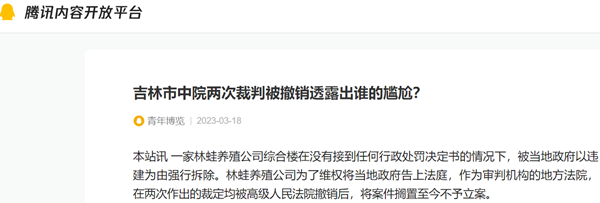 2021年12月13日,接到上诉状的吉林省高级法院经审理认为:原审法院对案涉建筑、案涉养殖业及案涉土地等相关事实认定不清,再次裁定撤销判决,发回重审。