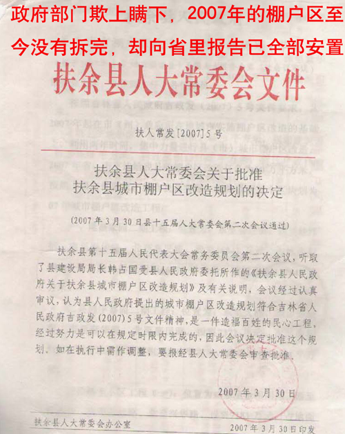 华夏区块2007年被扶余市政府列为棚户区改造项目,根据棚户区改造政策文件,政府作为棚户区改造责任主体和实施主体,由扶余政府负责统一拆迁。2007年至今没有拆完,主要原因是政法系统的要员充当钉子户。刘春水是原扶余市公安局经侦大队队长,现在是扶余最大的开发商,先后开发了英伦东郡、鼎浩小区、鼎浩艺墅、福地华庭、天玺小区,开发面积达100多万平方米。苗月华则是原扶余市法院常务院长王安君的夫人。正是由于他们带头当起了钉子户,才导致拆迁至今未能完成,进而导致产权置换无限期的延迟履行,政府反而起诉我公司根本违约,这是典型的老赖做法。