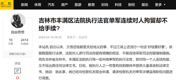 执行法官单军连续对人司法拘留惹争议