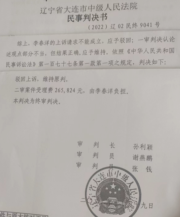 讨要的5300万没有了,李先生当然不能服,于是上诉到大连市中级法院,到了这里又出现了另一种情形,这大连中院将李先生的工程认定为“内部承包”,但管理费照收。