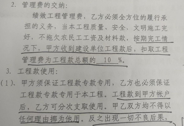 焦点二:拨款给施工方的工程款到底扣没扣10%的管理费?