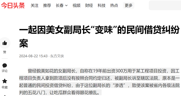 曾经貌美如花的女副局长,自称在19年前出资300万用于某工程项目投资,因工程项目负责人拿到款项后没有按照合同约定归还,被副局长诉至辖区法院,原本是一起普通的民间投资借贷纠纷,由于这位副局长的“渗透”,致使该案被省内各级法院判的五花八门,让吃瓜群众看得眼花缭乱。