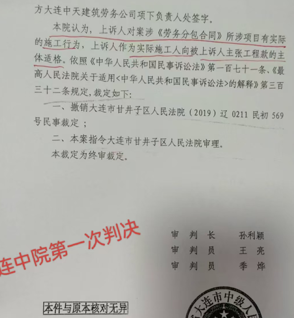 高先生不服,上诉到大连市中级法院,大连中院首先认为高先生主张工程款“主体适格”,即身份是正确的,所以发回甘井子区法院进行重审。这次重审,甘井子区法院不仅认定了高先生的讨债身份,还判给他55万欠款及利息,但是,高先生主张的工程超期部分,没有被认可。
