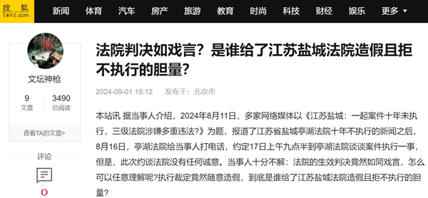 本站讯 据当事人介绍,2024年8月11日,多家网络媒体以《江苏盐城:一起案件十年未执行,三级法院涉嫌多重违法?》为题,报道了江苏省盐城亭湖法院十年不执行的新闻之后,8月16日,亭湖法院给当事人打电话,约定17日上午九点半到亭湖法院谈谈案件执行一事,但是,此次约谈法院没有任何诚意。当事人十分不解:法院的生效判决竟然如同戏言,怎么可以任意理解呢?执行裁定竟然随意造假,到底是谁给了江苏盐城法院造假且拒不执行的胆量?
