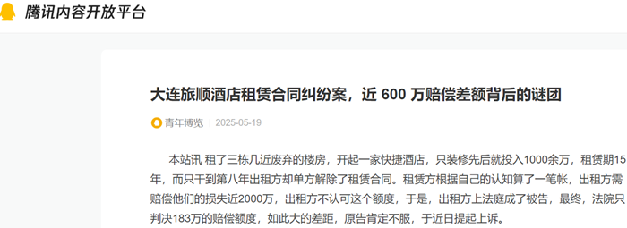 按理,这起房屋租赁纠纷并不难审理,但是,2024年5月法院正式立案,但到今年半个月前才下判决,此案整整审了一年,但结果却只判了183万的赔偿额度。对此,酒店方如何也想不明白,他们投入巨额资金获得经营收益的目的落空,该经营收益的丧失必然成为其损失,且合同当中还明明写着的,这是最基本的事实,但法院却以“经营损失具有不确定以及超出可预见性”为借口,不认可酒店方面的请求。