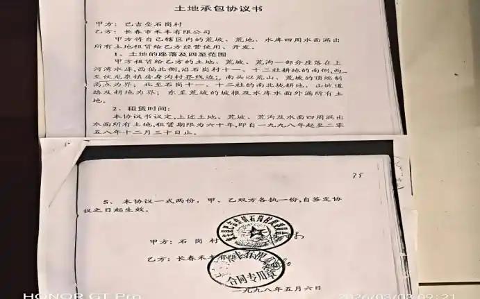 1997年,农安县人民政府作出行政裁决,明确巴吉垒水库库容区土地归巴吉垒镇所有。次年,农安县巴吉垒镇石岗村民委员会与长春禾丰有限公司签订《土地承包协议书》,将水库四周土地租赁给该公司经营开发,承包期限60年。这份基于政府确权之上的承包协议,为禾丰公司奠定了坚实的合法经营基础。