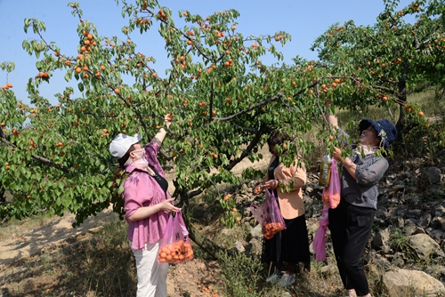 48岁的基地负责人王付英得知后,乐呵呵地说:“感谢你们的宣传,今天你们采摘的杏全部免费。”