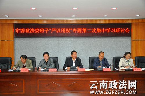 近日,昆明市委政法委班子召开“严以用权”专题第二次集中研讨学习会,会议以十八届五中全会、习近平总书记在中央政治局第26次集中学习时的重要讲话精神以及新修订的中国共产党廉洁自律《准则》和纪律处分《条例》为主要内容,结合学习贯彻省委九届十一次全会精神,重点围绕“为民用权、秉公用权、规范用权,树立忠诚干净担当新形象”这一主题开展学习研讨。