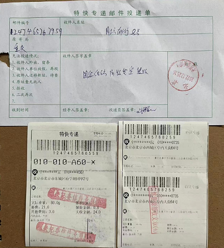 上图:实名投诉人给中纪委、国家信访局及国土资源部的实名信访回执单。