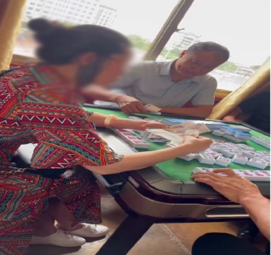 上图:村支书文正江聚众赌博正在收钱的视频裁图。