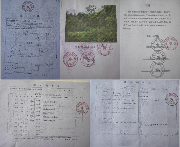 上图:村支书正江伪造默失手续村民罗淑媛宅基地修建付家山村民委员会。