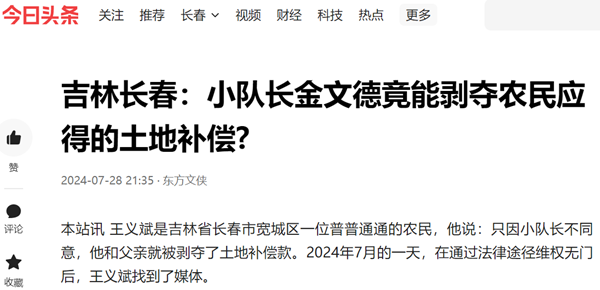 本站讯 王义斌是吉林省长春市宽城区一位普普通通的农民,他说:只因小队长不同意,他和父亲就被剥夺了土地补偿款。2024年7月的一天,在通过法律途径维权无门后,王义斌找到了媒体。