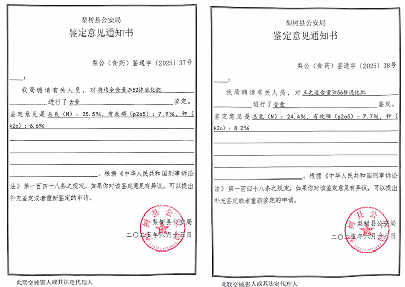 检测数据揭示了更触目惊心的事实:王艳军购买的化肥标注总养分55%(26-14-15),实际检测为38%(25.7-5.7-6.5);王超购买的56%养分化肥,实际仅39.8%。按照农业农村部规定,化肥总养分偏差超过3%即属不合格产品,而本案的偏差值是国家标准的5倍以上。