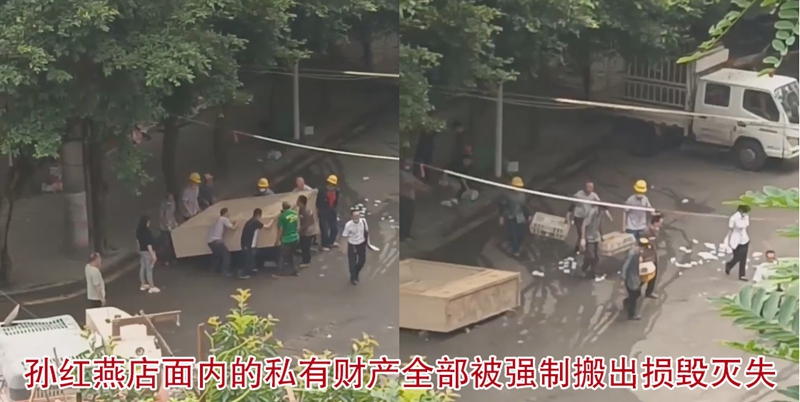据孙红燕介绍:孙红燕的商业门面位于丰都县名山街道双桂街89号7号,43.36平方米的建筑面积附带5.39平方米分摊面积,是她一家合法持有的生计所在。2022年6月23日,这份平静被彻底打破——名山街道办事处公职人员杨圣德带领百余名社会人员突至现场,在未出示任何审批文件、未履行公告程序、未提前告知的情况下,对该门面实施了强制拆除。