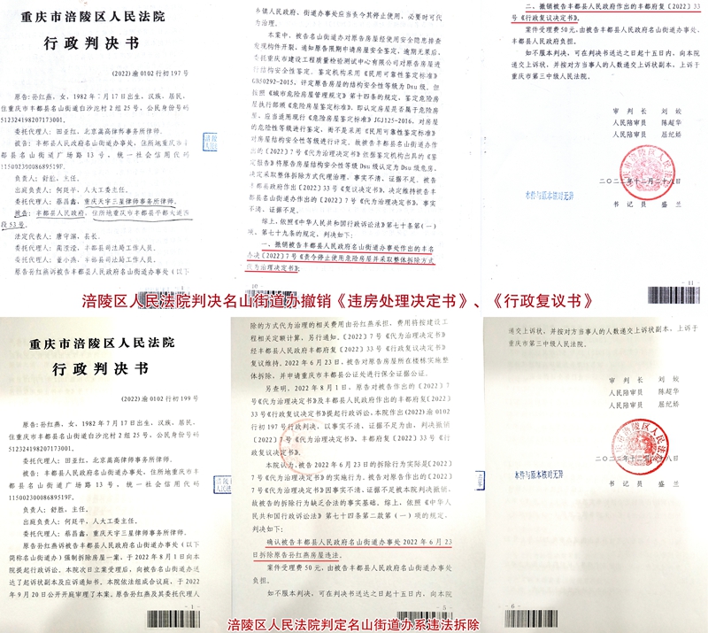 本站讯 2023年1月20日,重庆市涪陵区法院(2022)渝0102行初199号行政判决书正式生效。这份法律文书清晰的判定:丰...