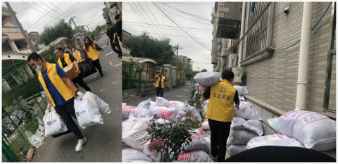 衣物捐赠现场么么直播团队扛包发货