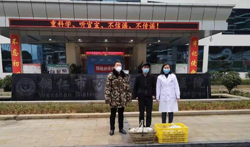随后杨大哥又给万山区人民医院送去了600枚鸭蛋,“太感谢了,我们正在为生活物资短缺发愁了,真是雪中送炭!”接过“礼物”的医院负责人说道。