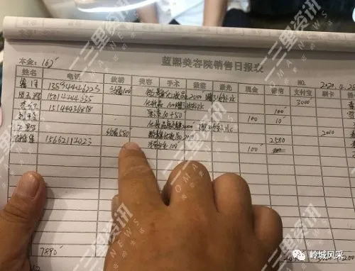 随后,蓝熙美容院负责人陈春波出示了客户登记表,显示鲁女士花费记录登记的是纹眉100元和化妆品2000元。